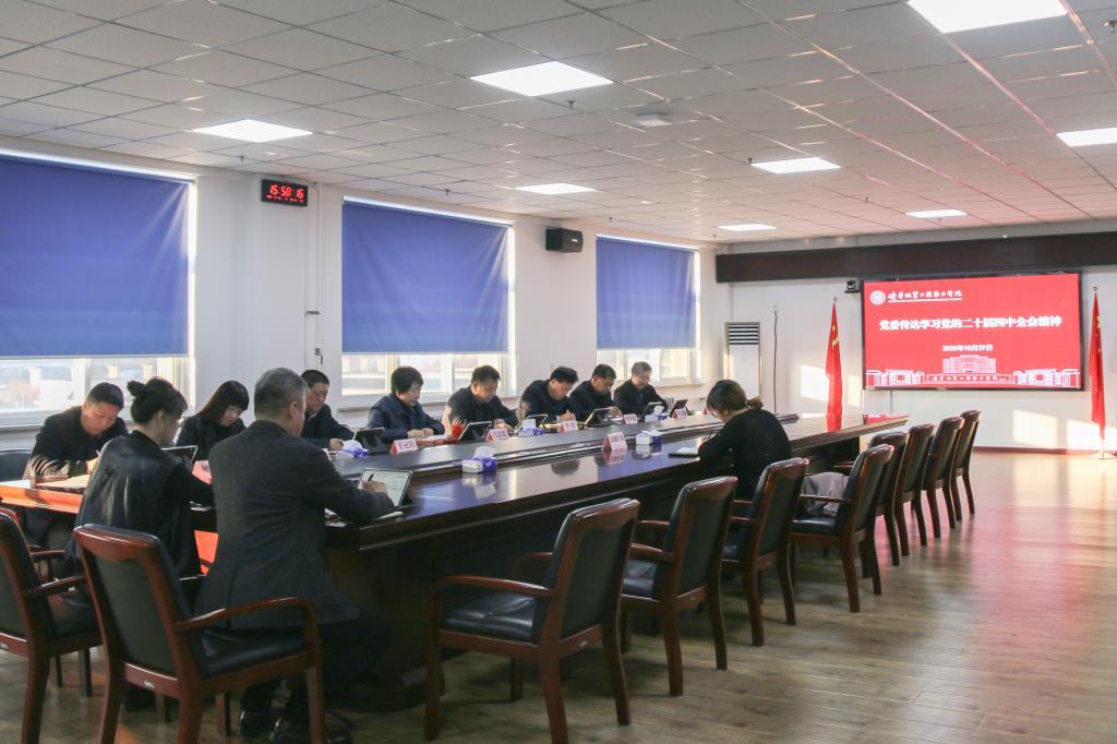 10月29日 天堂影视,学院党委召开扩大会议,传达学习党的二十届四中全会精神,党委书记吕志霞主持会议并讲话。
